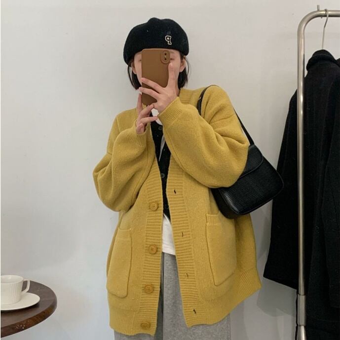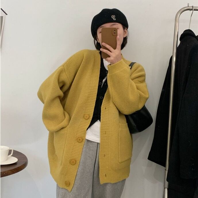 【送料無料】 ニット カーディガン オーバーサイズ オルチャン レディース 韓国 ボタン ポケット グレー イエロー オレンジ レッド ホワイト ネイビー デート 長袖 ボリューム袖 ぽわん袖 かわいい 大人可愛い きれいめ シンプル カジュアル 上品 おしゃれ かっこいい 大人女子 こなれ感 ルーズ 個性的 クール セクシー 抜け感 女性用 ママ 女子会 お泊まり 休日 旅行 ショッピング 着回し 普段使い コーデ スタイル 楽ちん モテ 体系カバー 定番 トレンド 流行 インスタ映え