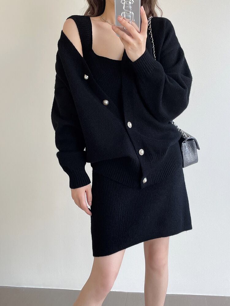 【送料無料】 ワンピースカーディガン セットアップ 2点セット ノースリーブワンピース 長袖カーディガン ショート丈 ハイウエスト ボタン ルーズ 韓国 レディース かわいい 可愛い 大人可愛い 大人女子 きれいめ シンプル カジュアル 大人 気品 上品 おしゃれ お洒落 こなれ感 きちんと 大人女子 レトロ シック フェミニン ワンサイズ ホワイト ブラウン グレー ブラック 秋 20代 30代 女子会 デート 旅行 休日 普段使い コーデ トレンド スタイル 脚長 美脚