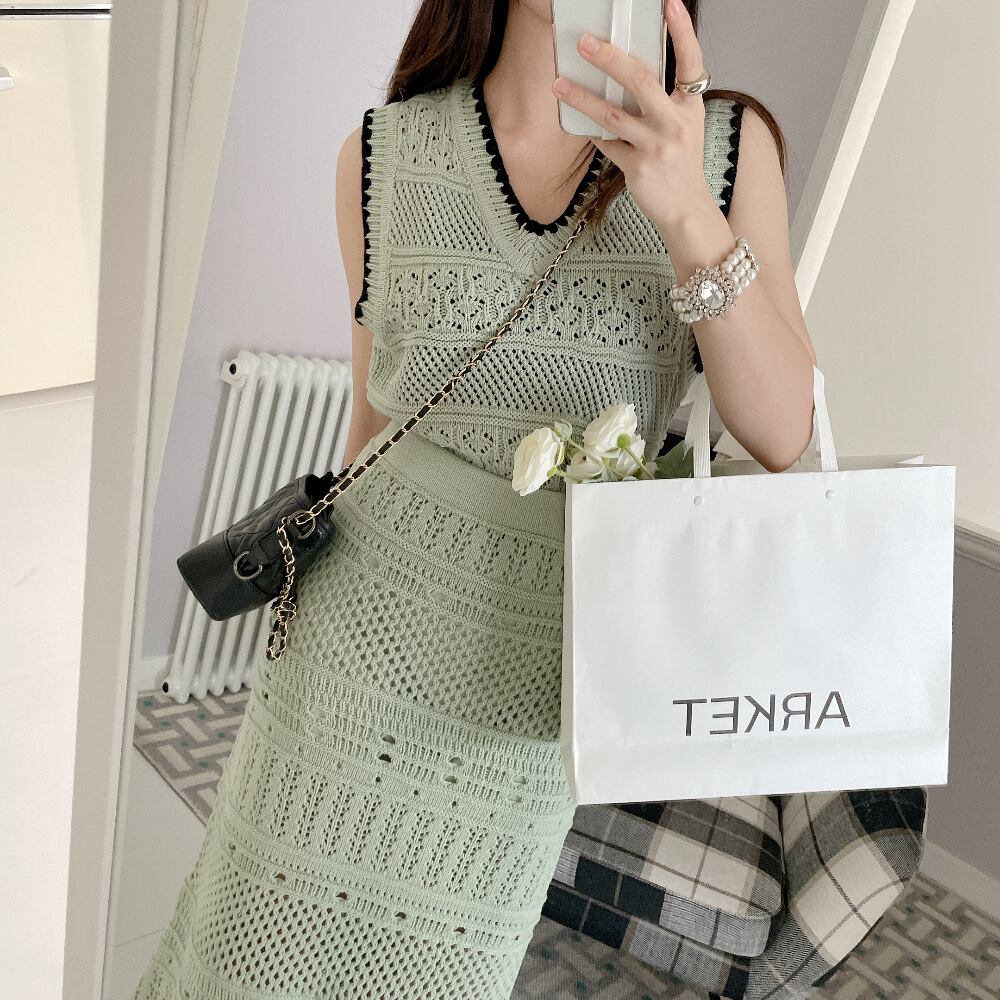 【送料無料】 レース スカートセットアップ 2点セット 上下セット ニットベスト ノースリーブ Vネック レース プルオーバー スカート ロング丈 タッセル ハイウエスト スリム 細身 韓国 レディース 可愛い 大人可愛い 大人女子 きれいめ シンプル カジュアル 大人 お洒落 こなれ感 きちんと 大人女子 クール エレガント レトロ ワンサイズ グリーン ホワイト 夏 20代 30代 40代 女子会 デート 旅行 休日 ショッピング 普段使い コーデ トレンド スタイル 脚長 美脚