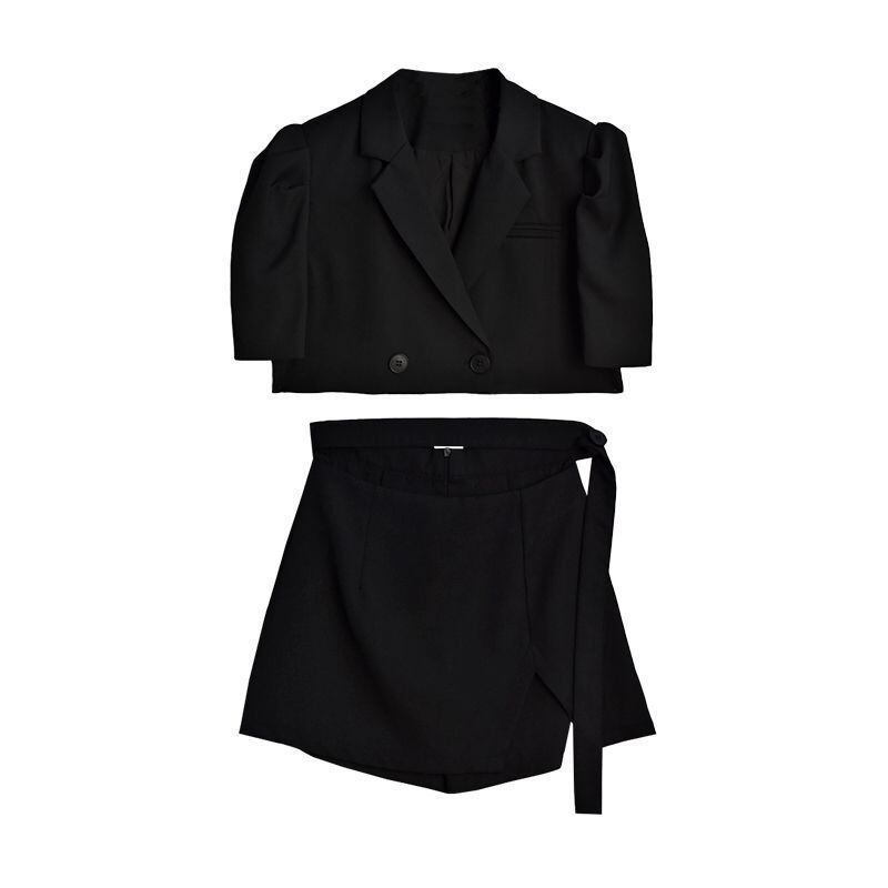 【送料無料】 ジャケットセットアップ 2点セット 上下セット ジャケット ショート丈 半袖 襟付き ボタン スカート ショート丈 ハイウエスト スリム 細身 韓国 レディース 可愛い 大人可愛い 大人女子 きれいめ シンプル カジュアル 大人 お洒落 こなれ感 きちんと 大人女子 クール エレガント フェミニン レトロ S M L XL ベージュ ブラック 春 秋 20代 30代 お呼ばれ OL 通勤 女子会 デート お泊まり 旅行 コーデ スタイル 脚長 美脚 インスタ映え
