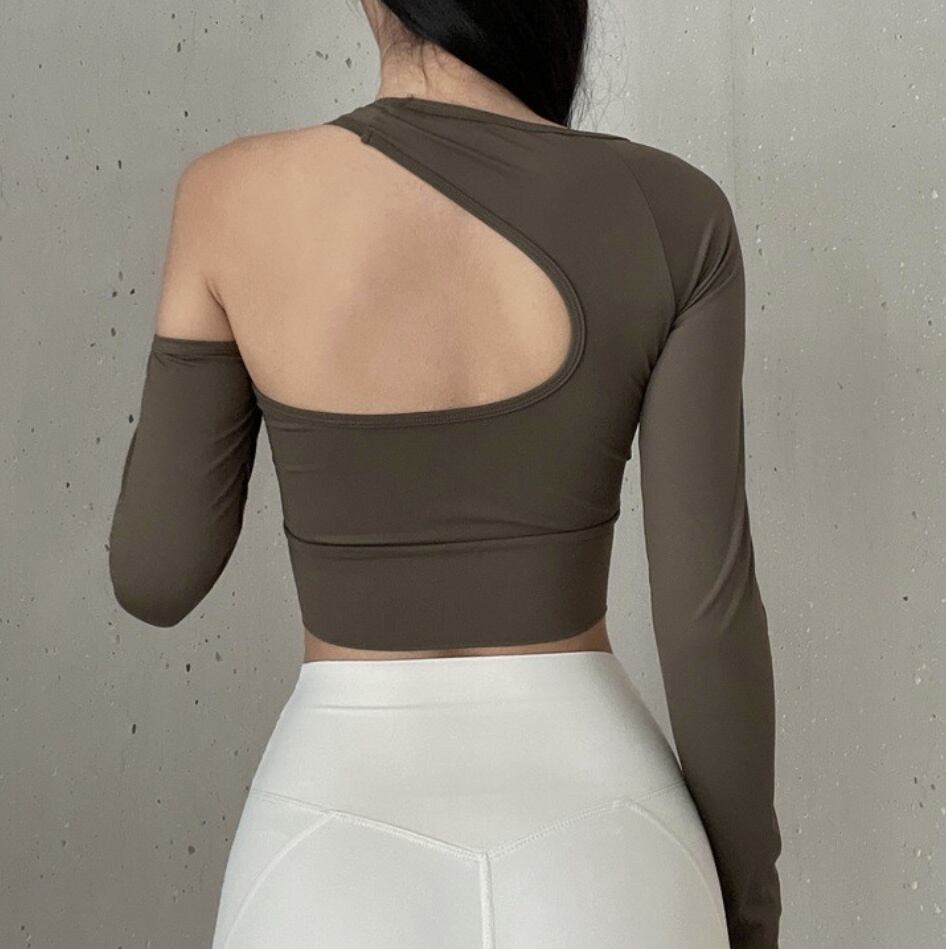 【送料無料】 ヨガウェア 上品 オフショルダー カットオフ 長袖トップス ブラカップ付き 白 ホワイト 黒 ブラック ブラウン 韓国 レディース オルチャン カットソー ホットヨガ ジム エクササイズ フィットネスウェア スポーツ 長袖 背中開き 大人可愛い きれいめ カジュアル おしゃれ かっこいい こなれ感 ラブリー キュート 個性的 クール モード系 抜け感 かっこいい 高見え 無地 オールシーズン 着回し 楽ちん 定番 トレンド 流行 インスタ映え S M L カラバリ