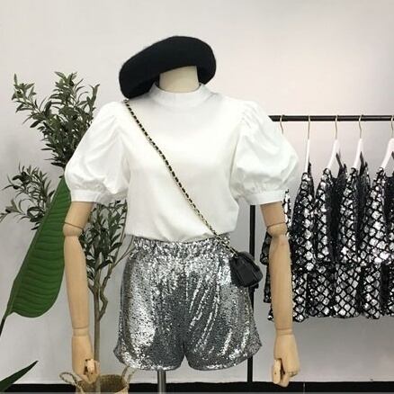 【送料無料】 シャツ 半袖シャツ パフスリーブ ラウンドネック 半袖 韓国 レディース オルチャン かわいい 黒 白 ブラック ホワイト スリム 萌え袖 細身 可愛い 大人可愛い 大人女子 シンプル カジュアル ショート丈 きれいめ 夏 春 カジュアル 大人 気品 上品 おしゃれ お洒落 こなれ感 きちんと 大人女子 モダン フェミニン 着回し 二の腕カバー S M L XL 2XL 春夏 10代 20代 30代 40代 50代 60代 女子会 デート お泊まり 普段使い コーデ トレンド