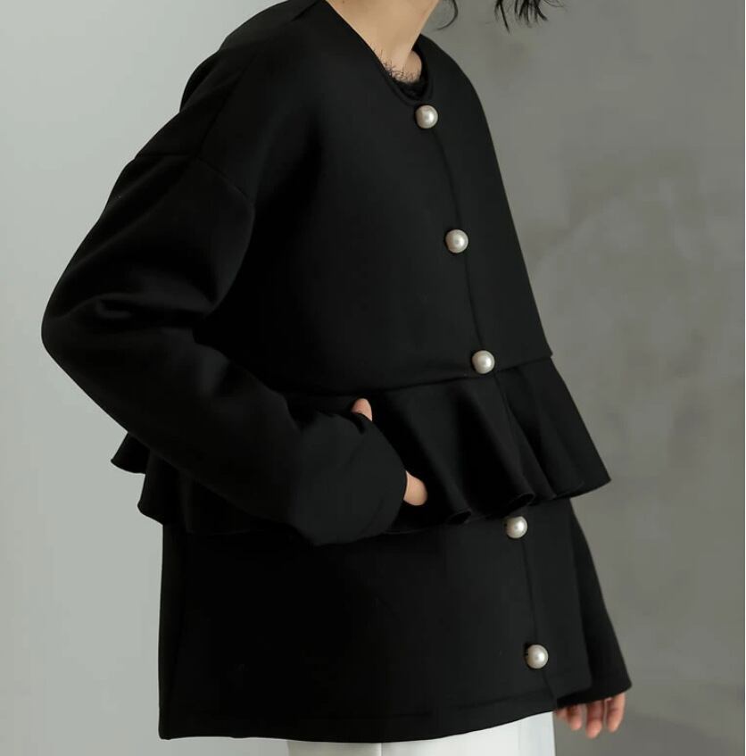 【送料無料】 パールボタンカットソー カットソー 長袖 ラウンドネック フリル パールボタン ルーズ 韓国 レディース かわいい 可愛い 大人可愛い 大人女子 シンプル 個性的 きれいめ カジュアル 大人 気品 上品 おしゃれ お洒落 こなれ感 抜け感 かっこいい きちんと 大人女子 クール モダン シック フェミニン ワンサイズ ベージュ ブラック 秋 オルチャン 20代 30代 40代 OL 通勤 女子会 デート お泊まり 旅行 休日 普段使い コーデ トレンド スタイル 楽チン