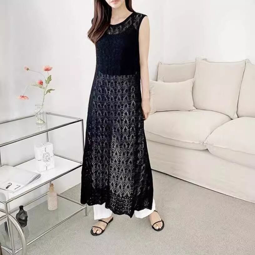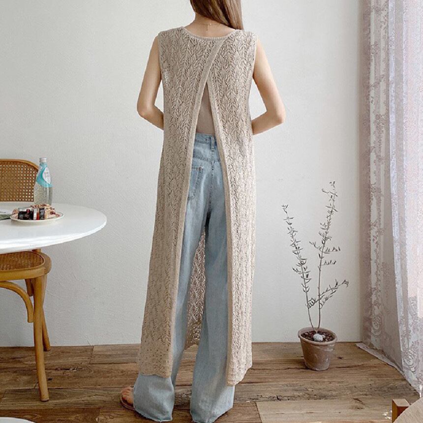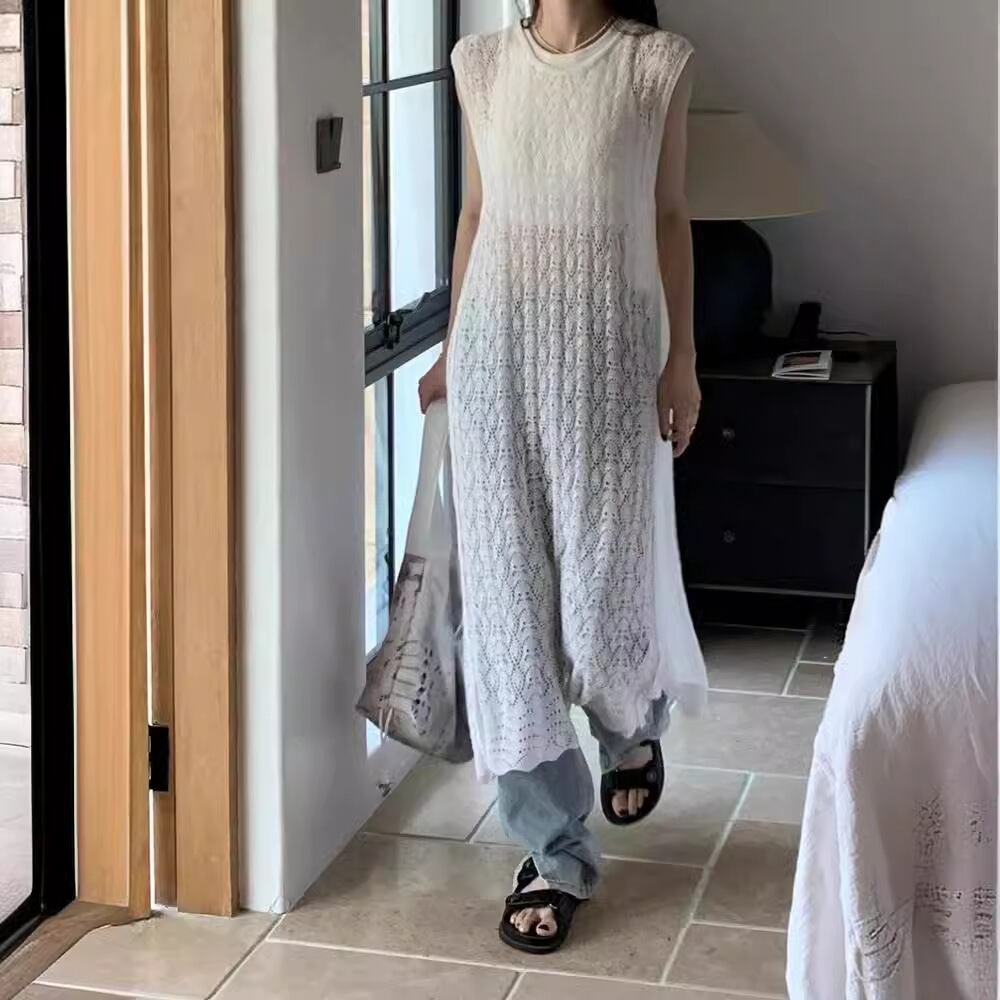 【送料無料】 ノースリーブ ニット ワンピース ニットワンピ ロング丈 スリット 透け感 シースルー 韓国 レディース オルチャン スリム 夏 すっきり 可愛い 個性的 大人 かっこいい きれいめ 高見え おしゃれ お洒落 モテ 女っぽい 大人っぽい 上品 美人 エレガント オトナ女子 大人女子 インスタ映え クール スタイルアップ デート シンプル 大人可愛い お出掛け こなれ感 カジュアル 20代 30代 40代 女子会 トレンド 普段使い イベント パーティー 着回し レイヤード
