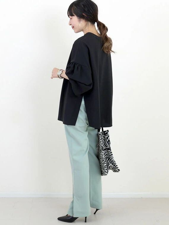 後ろボタンとバルーン袖が個性的なデザインで、女性らしい大人カジュアルスタイルを叶えます。