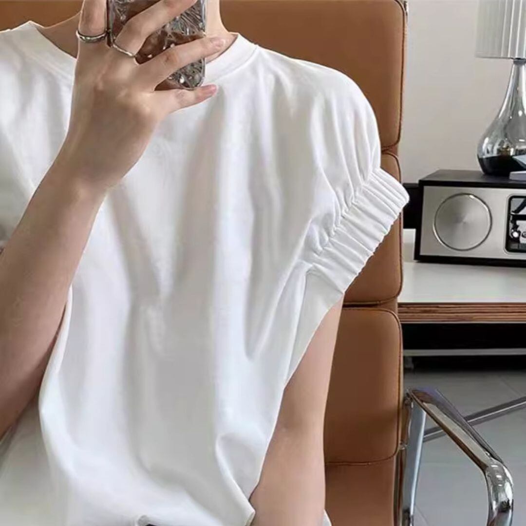 【送料無料】 ギャザー フレンチスリーブ Tシャツ カットソー 二の腕カバー 半袖 夏 韓国 レディース オルチャン トップス 可愛い 個性的 大人 かっこいい きれいめ 高級感 高見え おしゃれ お洒落 モテ 女っぽい 大人っぽい 上品 美人 オトナ女子 大人女子 インスタ映え クール スタイルアップ デート シンプル 大人可愛い お出掛け こなれ感 カジュアル きちんと 20代 30代 40代 女子会 トレンド 普段使い イベント パーティー 着回し デイリー 通勤 通学 オフィス OL