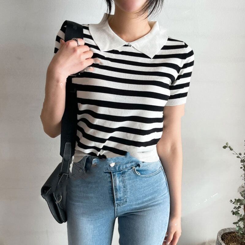 【送料無料】 レトロコントラストカットソー カットソー 半袖 襟付き ポロカラー 無地 ボーダー柄 プルオーバー スリム 細身 韓国 レディース かわいい 可愛い 大人可愛い 大人女子 シンプル きれいめ カジュアル 大人 気品 上品 おしゃれ お洒落 こなれ感 抜け感 かっこいい きちんと 大人女子 クール モダン フェミニン ワンサイズ ホワイト ブラック 夏 オルチャン 10代 20代 30代 40代 OL 通勤 デート 女子会 お泊まり 休日 普段使い コーデ トレンド 楽チン