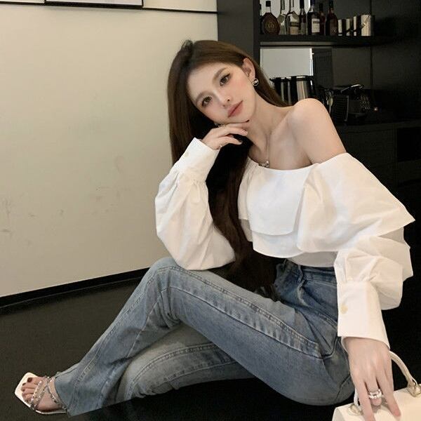 【送料無料】 ワンショルダー カットソー 白シャツ フリル 白 個性的 韓国 レディース オルチャン ホワイト 長袖 トップス 可愛い 肩見せ 大人 かっこいい きれいめ 高級感 高見え おしゃれ 10代 20代 30代 40代 体型カバー お洒落 モテ 女っぽい 大人っぽい 上品 エレガント ゴージャス オトナ女子 大人女子 インスタ映え 主役級 存在感 スタイルアップ デート シンプル 大人可愛い こなれ感 パーティー イベント カジュアル きちんと セクシー 女子会 トレンド 細見え 普段使い
