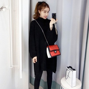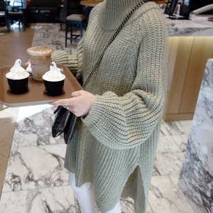 【送料無料】 ニット セーター サイドスリット 黒 ニットワンピース 韓国 レディース オルチャン 膝上丈 ハイネック タートルネック ブラック もこもこ 厚手 暖かい ゆったり ボリューム袖 ワイド ぽわん袖 フリーサイズ 上品 おしゃれ かっこいい 10代 20代 30代 40代 50代 存在感 ラフ シンプル こなれ感 二の腕カバー 体型カバー キュート 抜け感 フェミニン ベーシック 秋 冬 休日 イベント デート 食事会 着回し 普段使い モテ トレンド 流行 インスタ映え