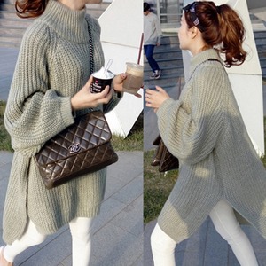 リラックス感たっぷりのニットセーター。グレーと黒のシンプルなカラーデザインで、幅広い年代の方にお使いいただけます。ハイネックと長袖なので、寒い季節も暖かさをキープ。さらに、サイドスリットが入っており、動きやすさも抜群です。