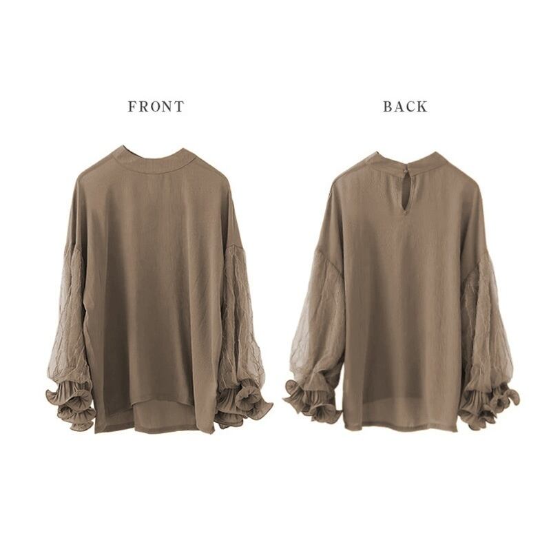 【送料無料】 ブラウス カットソー シフォン プルオーバー フリル ホワイト 黒 韓国 レディース オルチャン シフォンブラウス トップス ボリューム袖 ラウンドネック ピンク 白 ブラウン 透け感 ブラック 柄シャツ 春 夏 秋 10代 20代 30代 40代 50代 楽ちん M L かわいい 大人可愛い きれいめ シンプル 大人 オフィス 通勤 OL 上品 おしゃれ 大人女子 こなれ感 キュート 主役級 存在感 抜け感 通学 デート 女子会 お泊まり 休日 旅行 着回し 普段使い