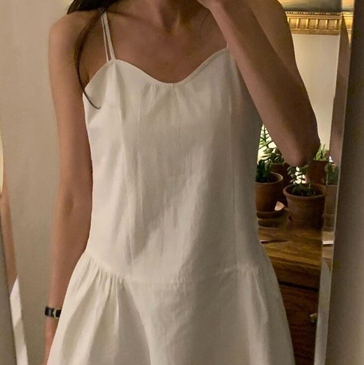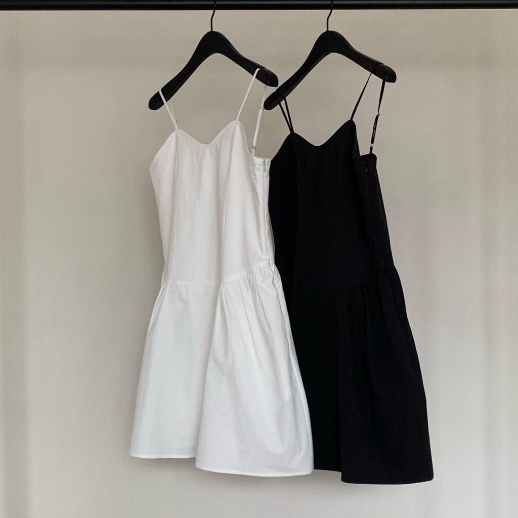 大人可愛いモノトーンのシンプルキャミワンピで夏のおしゃれを楽しんで。