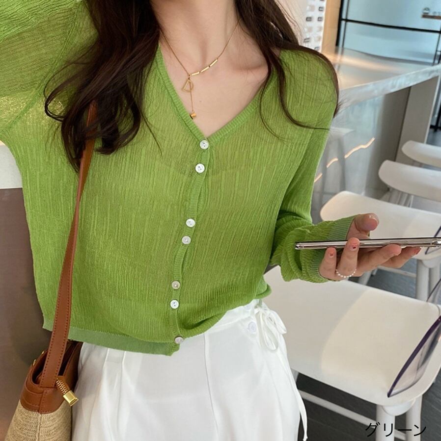【送料無料】 シースルーニットカーディガン カラーカーディガン 冷房対策 韓国 レディース オルチャン 白 ホワイト 黒 ブラック ピンク ベージュ 青 ブルー 緑 グリーン オレンジ 黄色 イエロー モスグリーン カラバリ トップス 長袖 Vネック 透け感 薄手 かわいい 大人可愛い きれいめ シンプル 上品 おしゃれ かっこいい こなれ感 ラブリー キュート 抜け感 フェミニン 無地 春 夏 休日 定番 デート 着回し 普段使い 重ね着 レイヤード フリーサイズ