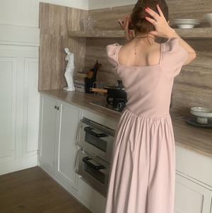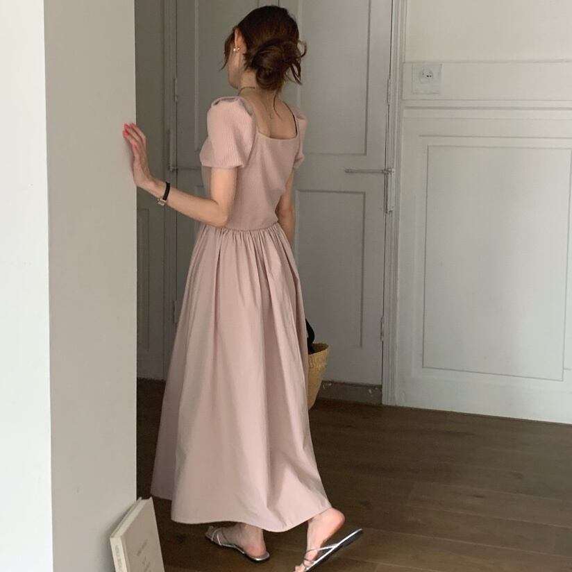 【送料無料】 ドッキングワンピース 異素材ミックス ニットワンピース パフスリーブ ピンク 黒 ブラック 韓国 レディース オルチャン ワンピドレス ロング丈 マキシ丈 半袖 スクエアネック フレア Aライン ウエストマーク ハイウエスト かわいい 大人可愛い きれいめ シンプル 上品 おしゃれ かっこいい こなれ感 ラブリー キュート 抜け感 フェミニン ナチュラル 無地 春 夏 休日 旅行 デート 着回し 普段使い モテ 体型カバー トレンド 流行 インスタ映え フリーサイズ