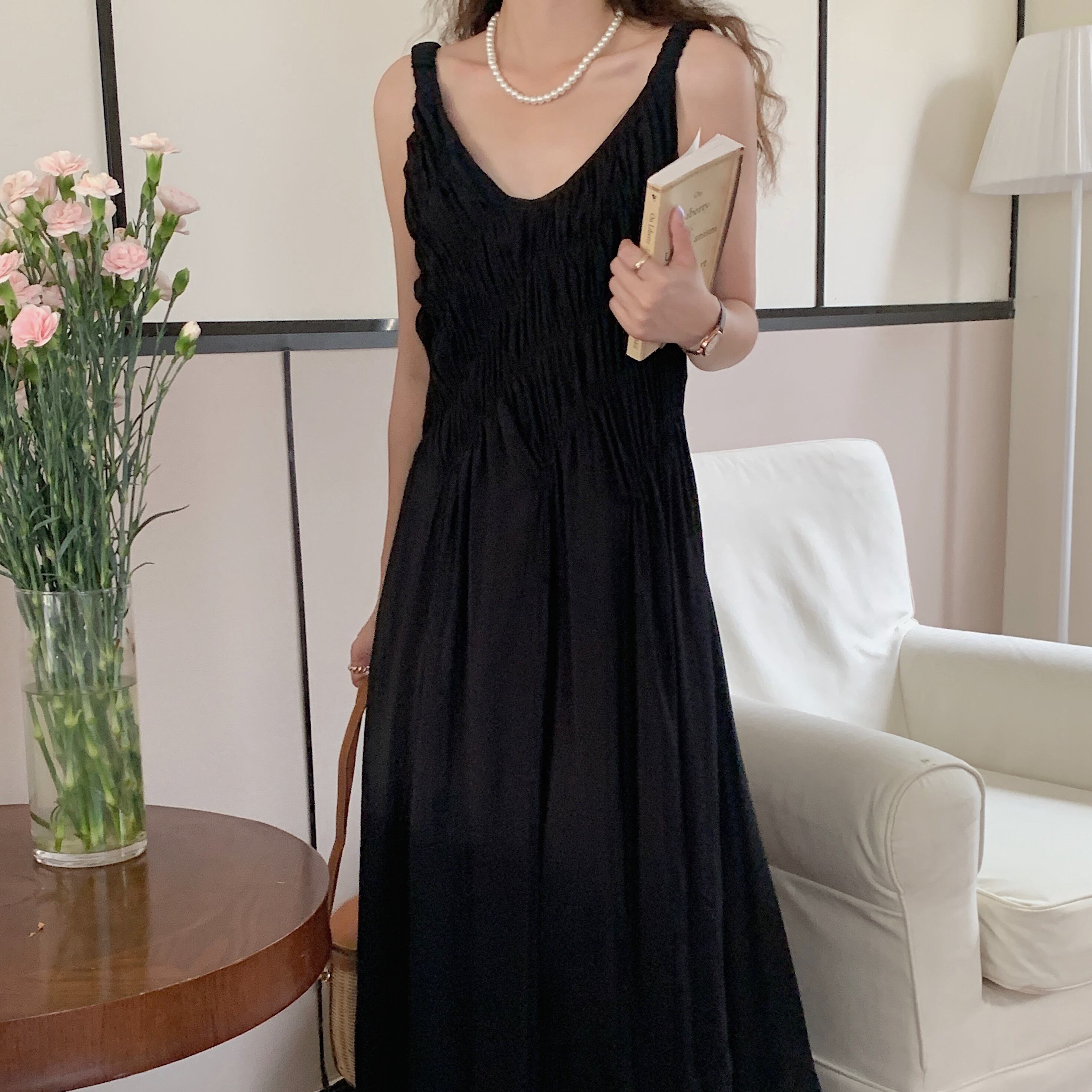 【送料無料】 プリーツマキシ丈ワンピース ノースリーブワンピース Vネック 黒 ブラック 白 ホワイト 韓国 レディース オルチャン ロング丈 袖なし フレア スリム タイト 細身 Aライン アシンメトリー 切り替えデザイン ウエストマーク 透け感 シースルー 薄手 かわいい 大人可愛い きれいめ 上品 おしゃれ レトロ こなれ感 ラブリー キュート ルーズ 抜け感 フェミニン 夏 休日 リゾート 旅行 デート ビーチ 楽ちん 体型カバー トレンド 流行 インスタ映え フリーサイズ
