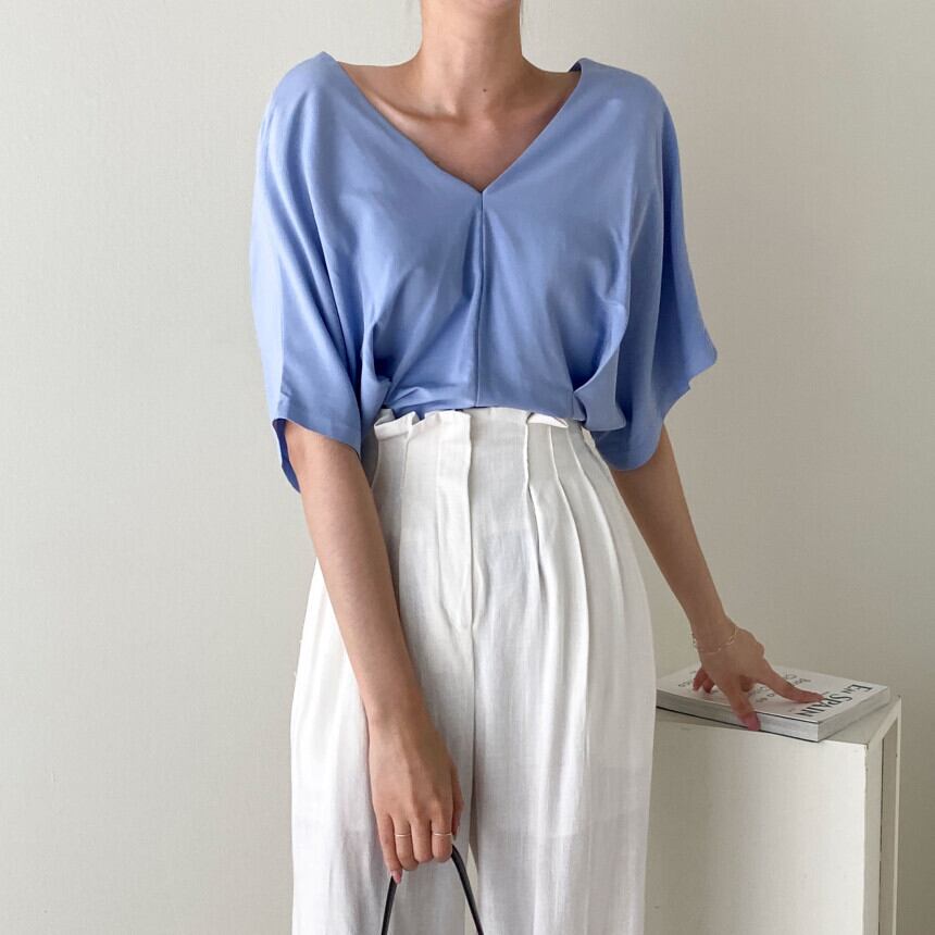 【送料無料】 Vネック五分袖カットソー オープンプルオーバー 背中見せ 白 ホワイト 黒 ブラック ブルー 水色 青ブラウン 韓国 レディース オルチャン 胸元 ウエストマーク ハイウエスト ギャザー タック かわいい 大人可愛い きれいめ シンプル 上品 おしゃれ こなれ感 ラブリー キュート 抜け感 フェミニン ナチュラル ベーシック オトナ女子 大人女子 無地 ヘルシー 夏 休日 ショッピング カフェ デート 着回し 普段使い トレンド 流行 インスタ映え フリーサイズ
