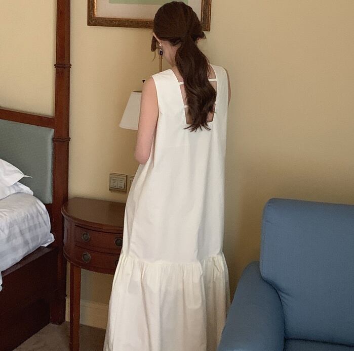 【送料無料】 背中開きノースリーブワンピース マキシ丈ワンピース ティアードワンピース 白 ホワイト 黒 ブラック ブラウン 韓国 レディース オルチャン ロング丈 袖なし ラウンドネック セミフレア ギャザー タック かわいい 大人可愛い きれいめ シンプル カジュアル おしゃれ こなれ感 ラブリー キュート エレガント モダン 抜け感 フェミニン ナチュラル ベーシック オトナ女子 大人女子 無地 夏 休日 リゾート デート トレンド 流行 インスタ映え フリーサイズ