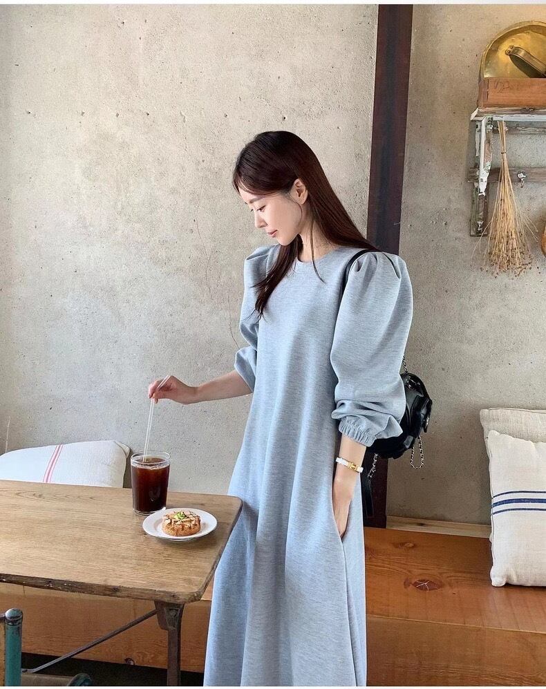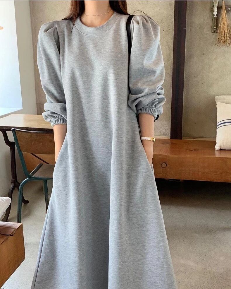 【送料無料】 スウェット フレア ワンピース パフスリーブ ロング丈 ポケット付き 2XL 3XL 韓国 レディース オルチャン 可愛い シンプル 個性的 大人 かっこいい きれいめ 高級感 高見え おしゃれ お洒落 モテ 女っぽい 大人っぽい 上品 美人 エレガント オトナ女子 大人女子 インスタ映え クール スタイルアップ デート 大人可愛い お出掛け こなれ感 カジュアル 20代 30代 40代 50代 女子会 トレンド 普段使い デイリー イベント パーティー 着回し 体型カバー グレー