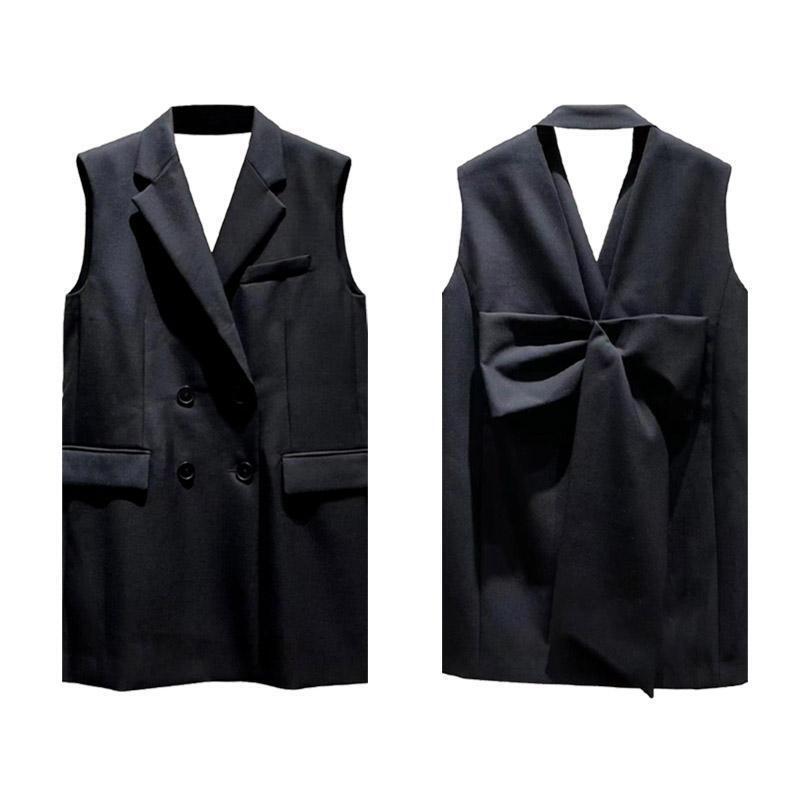 【送料無料】 バックオープン リボン ミドル丈 ワンピース ノースリーブ ジレ ベスト 黒 白 韓国 レディース オルチャン 可愛い シンプル 個性的 大人 かっこいい きれいめ 高級感 高見え おしゃれ お洒落 モテ 女っぽい 大人っぽい 上品 美人 エレガント オトナ女子 大人女子 インスタ映え クール スタイルアップ デート 大人可愛い お出掛け こなれ感 カジュアル きちんと 20代 30代 女子会 トレンド 普段使い デイリー イベント パーティー 結婚式 二次会 着回し ブラック