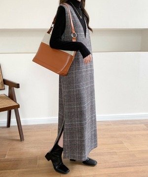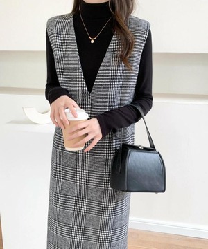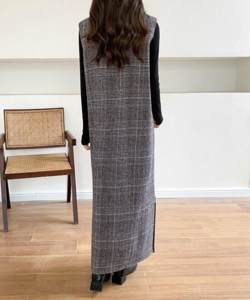 【送料無料】 ワンピース ジャンパースカート ジャンスカ ロング ロング丈 チェック 韓国 レディース オルチャン ペンシルスカート タイトスカート 袖なし ノースリーブ Vネック スリム タイト 細身 ストレート 大人可愛い きれいめ シンプル 大人 上品 おしゃれ お洒落 大人女子 こなれ感 キュート 主役級 存在感 チェック柄 秋 冬 10代 20代 30代 40代 オフィス ビジネス OL デート 女子会 休日 旅行 ガーデン レストラン 着回し 普段使い 重ね着