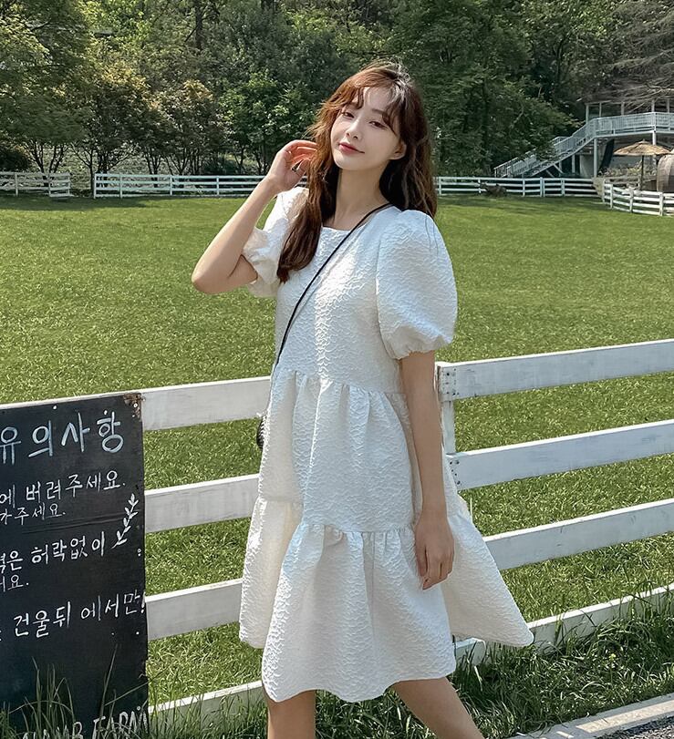 【送料無料】 パフスリーブフェアリーワンピース パフスリーブ ワンピース 黒 白 膝丈 ハイウエスト 韓国 レディース オルチャン 可愛い 大人可愛い 大人女子 きれいめ カジュアル 大人 気品 上品 おしゃれ お洒落 こなれ感 抜け感 かっこいい きちんと 大人女子 キュート ラブリー 存在感 主役級 S M ホワイト ブラック 夏 10代 20代 30代 デート 女子会 休日 普段使い デイリー コーデ トレンド インスタ映え ラウンドネック Aライン