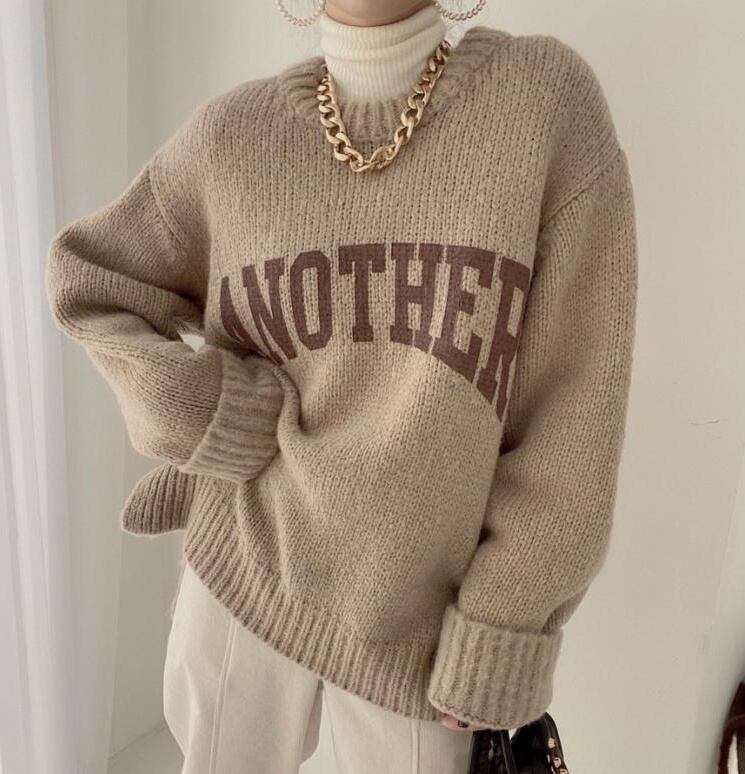 【送料無料】 セーター プリントセーター ミディアム丈 長袖 萌袖 ラウンドネック サイドスリット 韓国 レディース オルチャン 可愛い かわいい 大人可愛い シンプル カジュアル 大人 おしゃれ お洒落 オトナ女子 こなれ感 ラフ ルーズ メンズライク 主役級 存在感 S M L XL 2XL ゆったり ホワイト 白 ピンク グレー カーキ 無地 プリント 秋 冬 10代 20代 30代 女性用 ママ OL 通勤 通学 デート 公園デビュー 女子会 旅行 着回し 普段使い 重ね着
