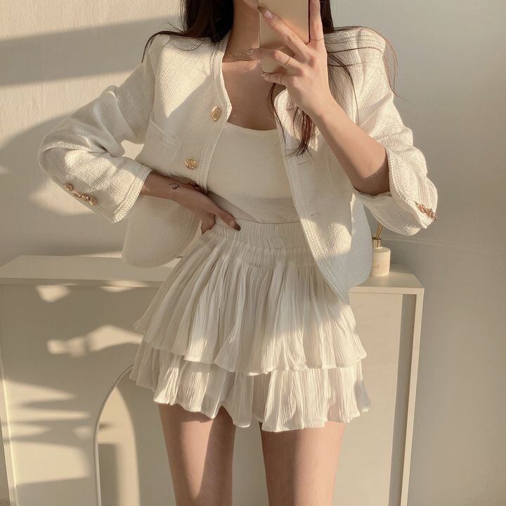 【送料無料】 ノーカラージャケット ショート丈 白 黒 韓国 レディース ゴールドボタン フォーマル 羽織り オフィス 通勤 オフィスカジュアル オルチャン 可愛い アウター シンプル 大人 きれいめ かっこいい 個性的 高級感 高見え おしゃれ お洒落 モテ 女っぽい オトナ女子 大人女子 インスタ映え スタイルアップ デート 大人可愛い お出掛け こなれ感 カジュアル 20代 30代 40代 50代 女子会 トレンド 普段使い デイリー イベント パーティー 着回し 体型カバー ホワイト
