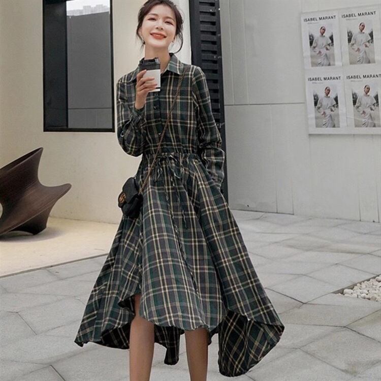 【送料無料】 チェック柄シャツワンピース ワンピース チェック 襟付き ポロカラー 韓国 レディース オルチャン ミモレ丈 ボタン ウエストマーク 可愛い 大人可愛い 大人女子 シンプル きれいめ カジュアル 大人 気品 上品 おしゃれ お洒落 こなれ感 抜け感 かっこいい きちんと 大人女子 キュート ラブリー ワンサイズ ブルー レッド グリーン 春 10代 20代 30代 デート 女子会 休日 普段使い コーデ トレンド スタイル 楽チン インスタ映え
