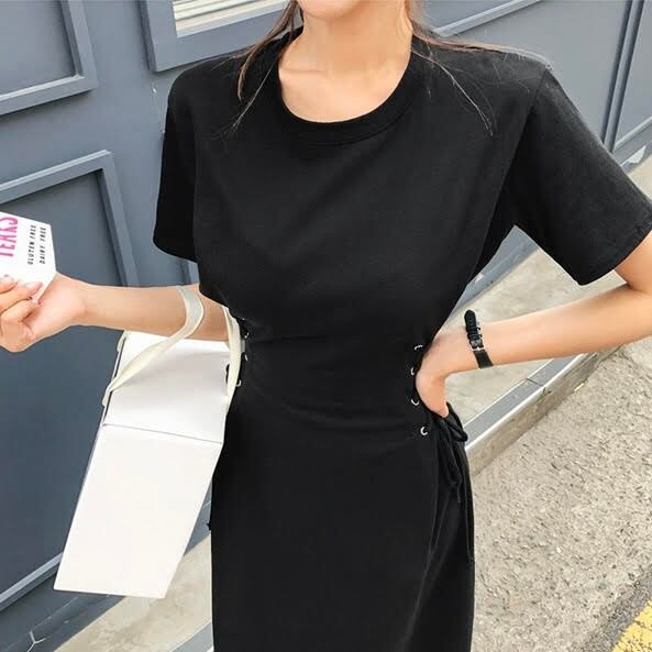 【送料無料】 ロングワンピース ワンピース レースアップ 半袖 長袖 黒 ロング丈 ウエストマーク 韓国 レディース オルチャン スタイルアップ 大きいサイズ 可愛い 大人可愛い 大人女子 シンプル きれいめ カジュアル 大人 気品 上品 おしゃれ お洒落 こなれ感 抜け感 かっこいい きちんと 大人女子 モダン シック クール フェミニン ブラック 10代 20代 30代 40代 デート 女子会 旅行 休日 普段使い デイリー コーデ トレンド ラウンドネック