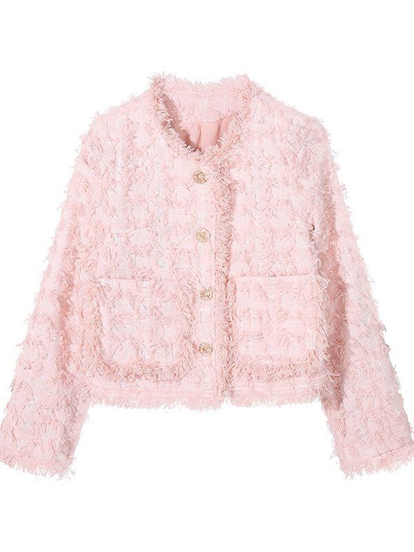 【送料無料】 立体タッセルカーディガンジャケット ジャケット レディース ピンク タッセル 韓国 レディース オルチャン 可愛い 大人可愛い 大人女子 シンプル きれいめ カジュアル 大人 気品 上品 おしゃれ お洒落 こなれ感 抜け感 かっこいい きちんと 大人女子 シック モダン クール フェミニン S M L XL 春 20代 30代 40代 OL 通勤 デート 女子会 お泊まり 旅行 休日 普段使い コーデ トレンド スタイル 長袖 ラウンドネック ショート丈 ボタン