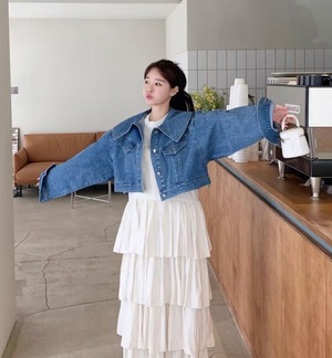 コーディネートのアクセントにぴったりなショートデニムジャケット。シンプルながらも襟付きや前開きのデザインが大人可愛さを引き立てます。気軽に羽織れるルーズなシルエットが着心地の良さも魅力的。ポケットやボタンもしっかりとした作りで、機能性も抜群です。カジュアルなデニム素材でありながら、上品な雰囲気を演出してくれる大人女子におすすめの一着です。