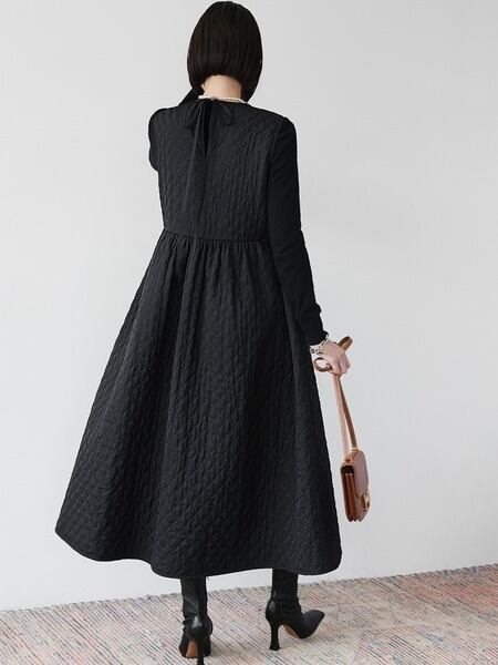 軽やかな風を感じさせるノースリーブワンピース。シンプルながらも上品なキルティング風のデザインで、大人可愛い女性を演出します。後ろのリボンがアクセントになり、存在感抜群な一着です。白と黒の2色展開で、様々なシーンに合わせやすく、コーディネートの幅も広がります。フレアのあるAラインシルエットで、女性らしいシルエットを演出。ミモレ丈で、足元もスッキリ見せてくれます。