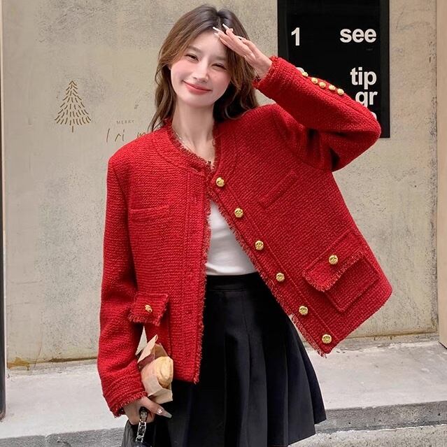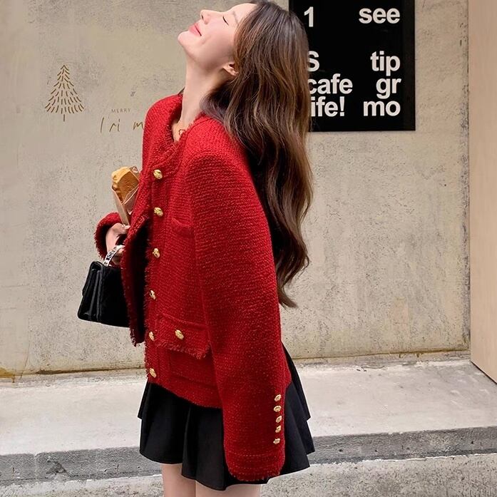 【送料無料】ツイードジャケット ツイードジャケットレッド ツイード ジャケット 赤 レッド 高見えジャケット ノーカラージャケット ノーカラー オルチャン 韓国 レディース フロントボタン 金ボタン ゴールドボタン フリンジ 長袖 きちんと 謝恩会 大人可愛い きれいめ 大人 上品 お洒落 おしゃれ オトナ女子 大人女子 こなれ感 入学式 入園式 卒業式 卒園式 セミフォーマル エレガント 食事会 フェミニン フォーマル ママ 母 高級感 高見え 食事会 かわいい 可愛い 主役級 存在感