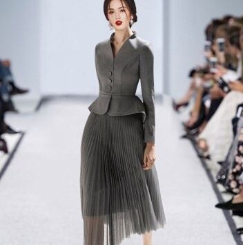 グレーの落ち着いたトーンが大人女子にふさわしい洗練された印象を与えます。