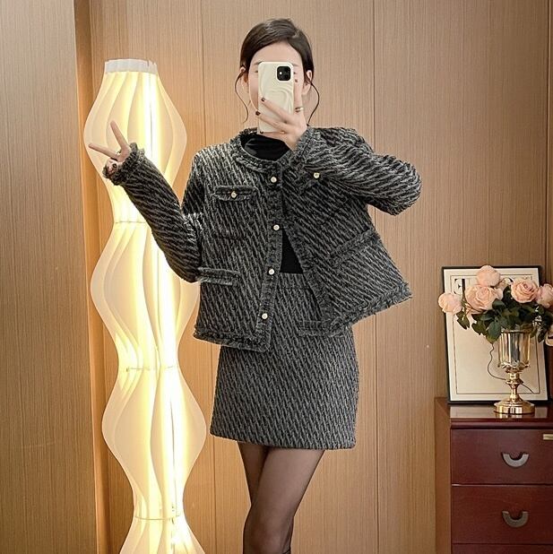 【送料無料】ミニスカートツイードセットアップ 高見えセットアップ ツイードセットアップ ショートスカート ブラックセットアップ 黒セットアップ セットアップブラック セットアップ黒 セットアップ 黒 ブラック グレー 灰色 ツイード 韓国 オルチャン レディース コーディネイトセット セットアイテム 高見え ハイウエスト 長袖 フロントボタン かわいい 可愛い 大人可愛い オトナ女子 大人女子 大人 上品 お洒落 おしゃれ こなれ感 抜け感 フェミニン デート きれいめ エレガント インスタ映え 母 ママ