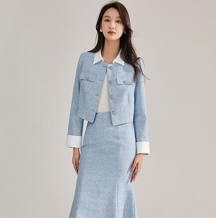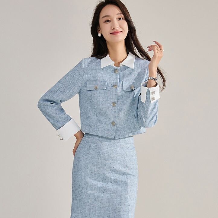 【送料無料】ロングスカート水色ツイードセットアップ 高見えセットアップ ツイードセットアップ セットアップ 水色ツイードセットアップ 水色 ライトブルー 青 ブルー 韓国 オルチャン レディース スカートスーツ コーディネイトセット セットアイテム バイカラー 高見え ハイウエスト 長袖 かわいい 可愛い大人可愛い 謝恩会 結婚式 二次会 オトナ女子 大人女子 大人 上品 お洒落 おしゃれ こなれ感 抜け感 フェミニン デート きれいめ エレガント インスタ映え ストリート 2点セット 上下セット ママ