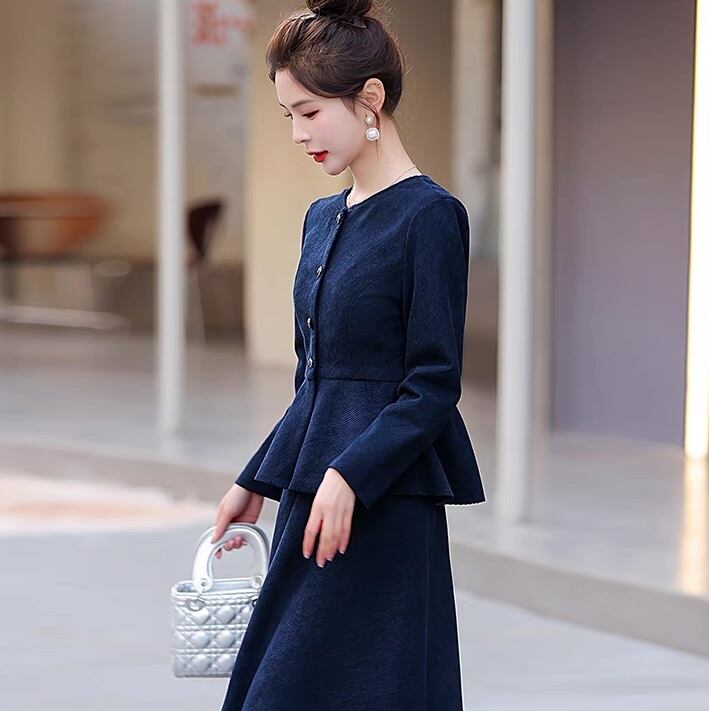 【送料無料】ペプラムセットアップ ペプラム スカートスーツ きちんと 上品 セミフォーマル フォーマル 厚手 紺 ネイビー 2XL 韓国 オルチャン レディース 高見えセットアップ ペプラム 高見え 長袖ペプラムジャケット ロングフレアスカート Aラインスカート aラインスカート ハイウエスト 大きいサイズ ぽっちゃり フロントボタン セットアイテム スーツ フェミニン エレガント お洒落 おしゃれ オトナ女子 大人女子 上品 大人 可愛い 大人可愛い かわいい 上下セット 2点セット 着回し 普段使い