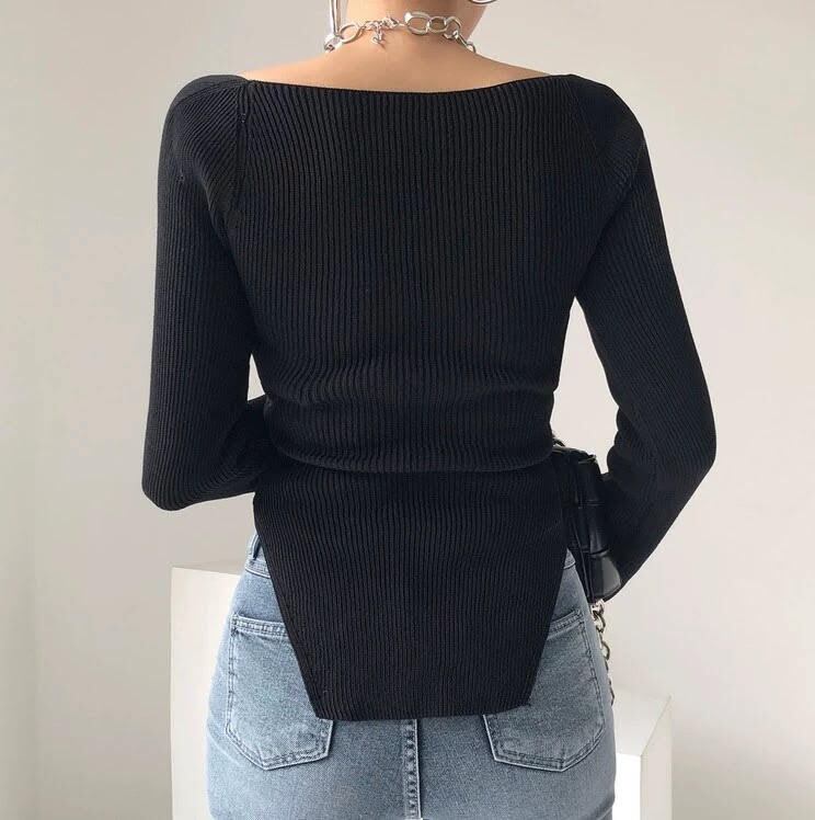 【送料無料】デザインサイドスリット長袖ニットソー サイドスリットニットソー 長袖ニットソー スリムニットソー ニットシャツ 白 ホワイト 黒 ブラック 韓国 オルチャン レディース 高見えニットソー きれいめニットソー ニットソー ニット サイドスリット 無地 きれいめ 可愛い 大人可愛い かわいい お洒落 おしゃれ かっこいい 大人かっこいい こなれ感 抜け感 セクシー クール モダン シック カジュアル デート お出かけ デイリー オトナ女子 大人女子 上品 エレガント 大人 普段使い インスタ映え