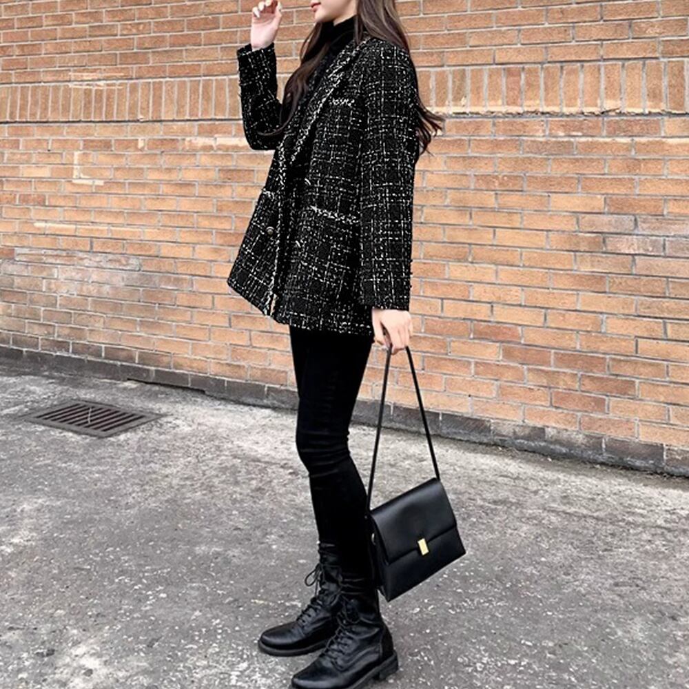 【即納】【送料無料】 ツイードジャケット レディース 秋冬 黒 チェック柄 ツイード ブレザー ジャケット 秋冬 ライトアウター カーディガン きれいめ 長袖 トップス オシャレ大人 エレガントアウター 通勤 結婚式 入学式 羽織 高見え