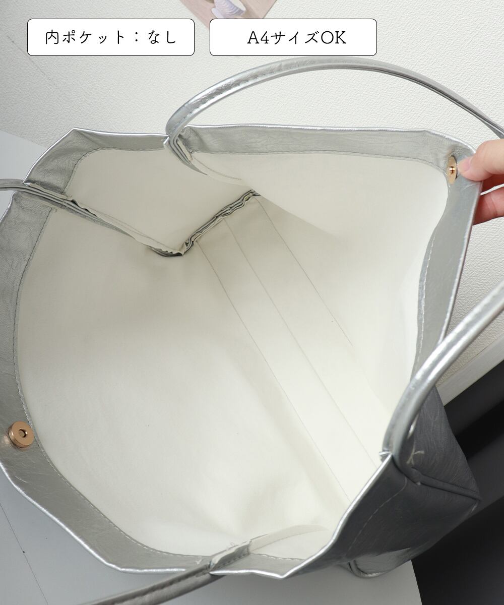 【即納】【送料無料】 シルバートートバッグ レディース トートバッグ シルバー 大容量 A4 マチあり 手提げバッグ 無地かばん 大容量 合皮 PUレザー ビックトート 肩掛けバッグ シンプル おしゃれ 男女兼用 通勤通学 マザーズバッグ オフィスカジュアル 韓国ファッション