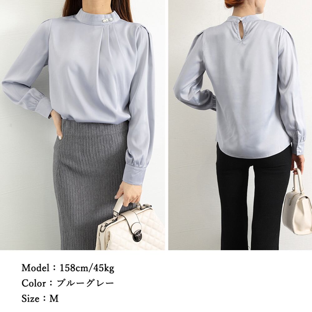 シンプルなコーディネートでもフェイクパールの存在感で上品かつ女性らしいスタイリングにキマるブラウス
